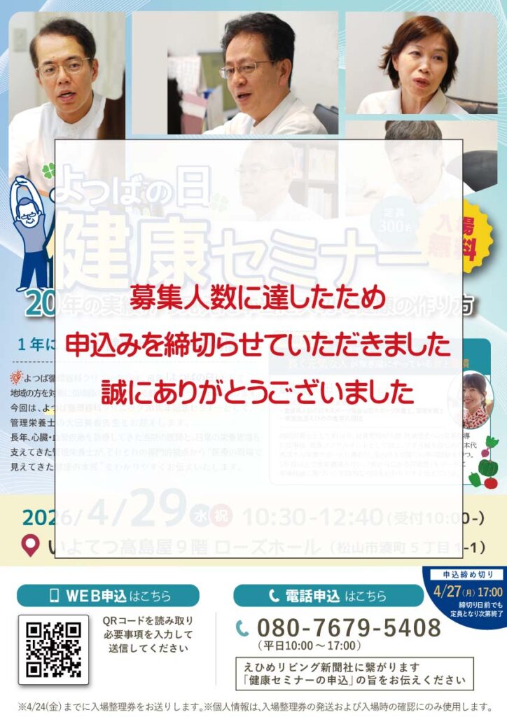 長きにわたり、心臓・血管疾患を診療してきた当院の医師と、日常の栄養管理を支えてきた管理栄養士が、それぞれの専門的視点から“医療の現場で見えてきた健康の本質”をお話しいたします。